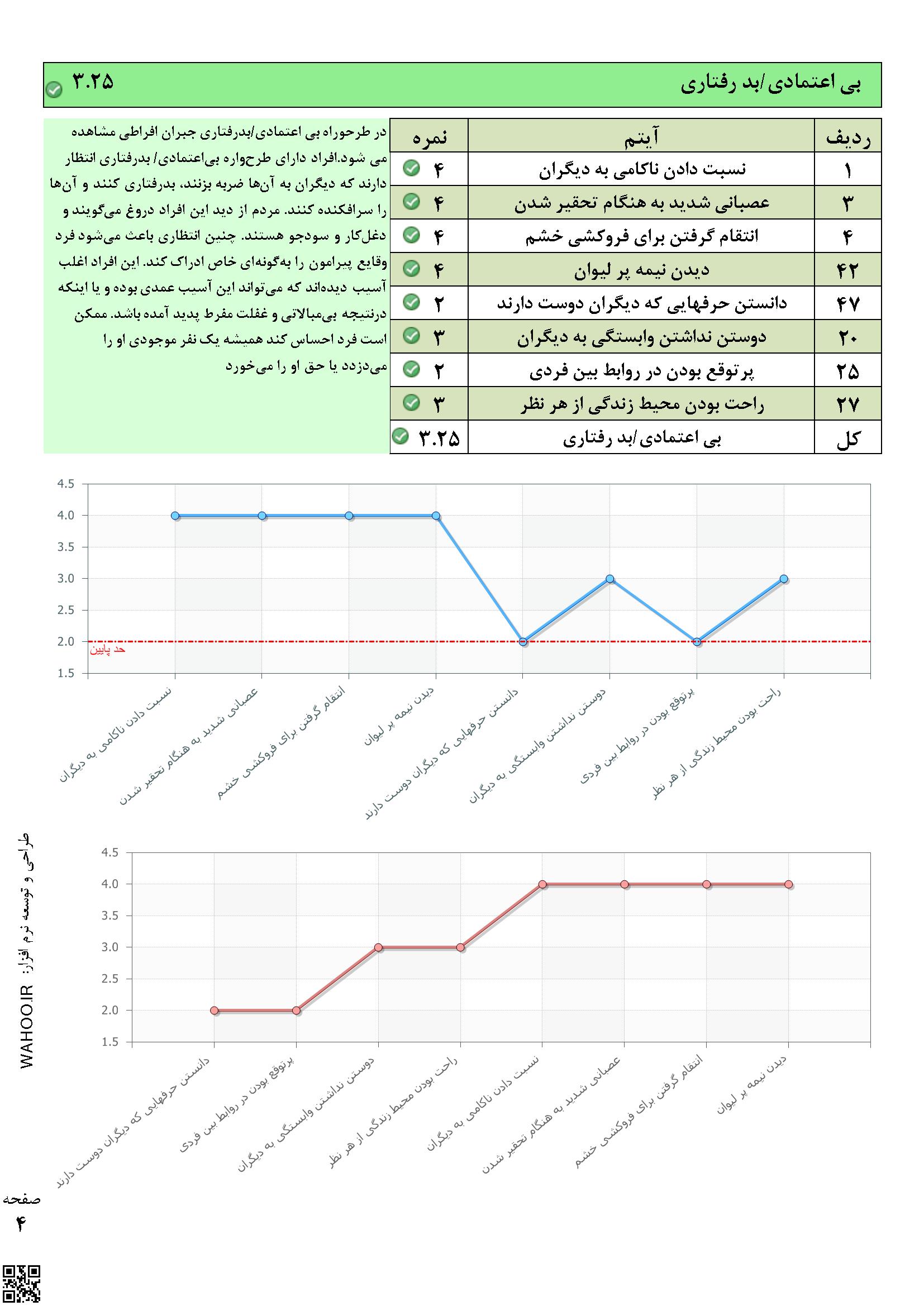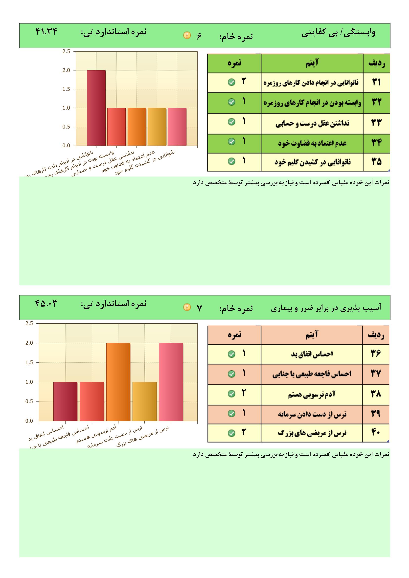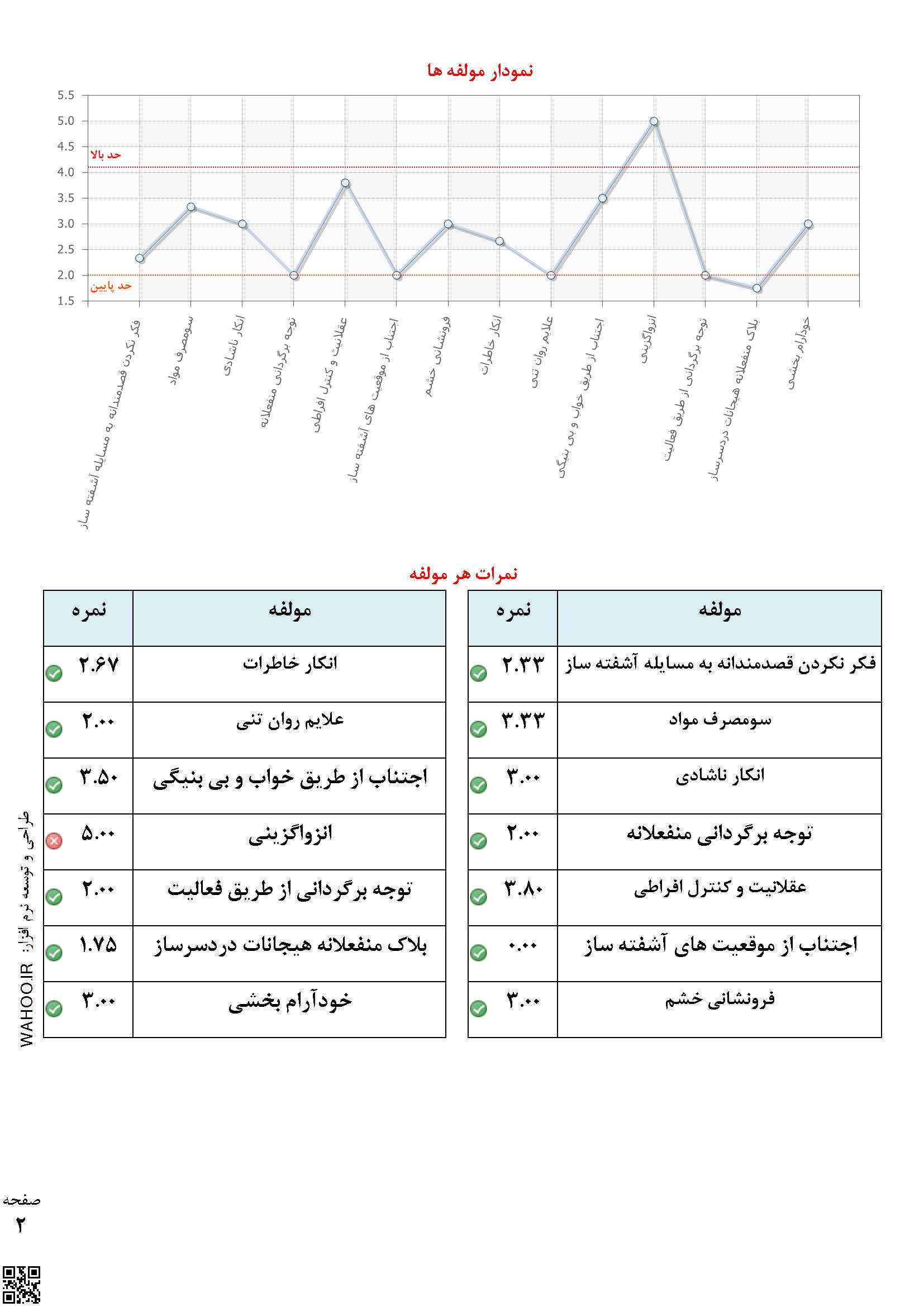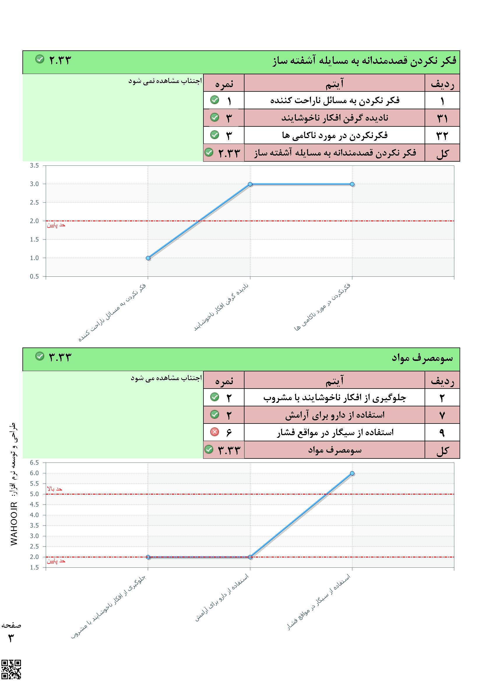 در زیر نمونه خروجی از آزمون طرجواره- اجتناب آورده شده است(چهار صفحه از ده صفحه گزارش آزمون)
