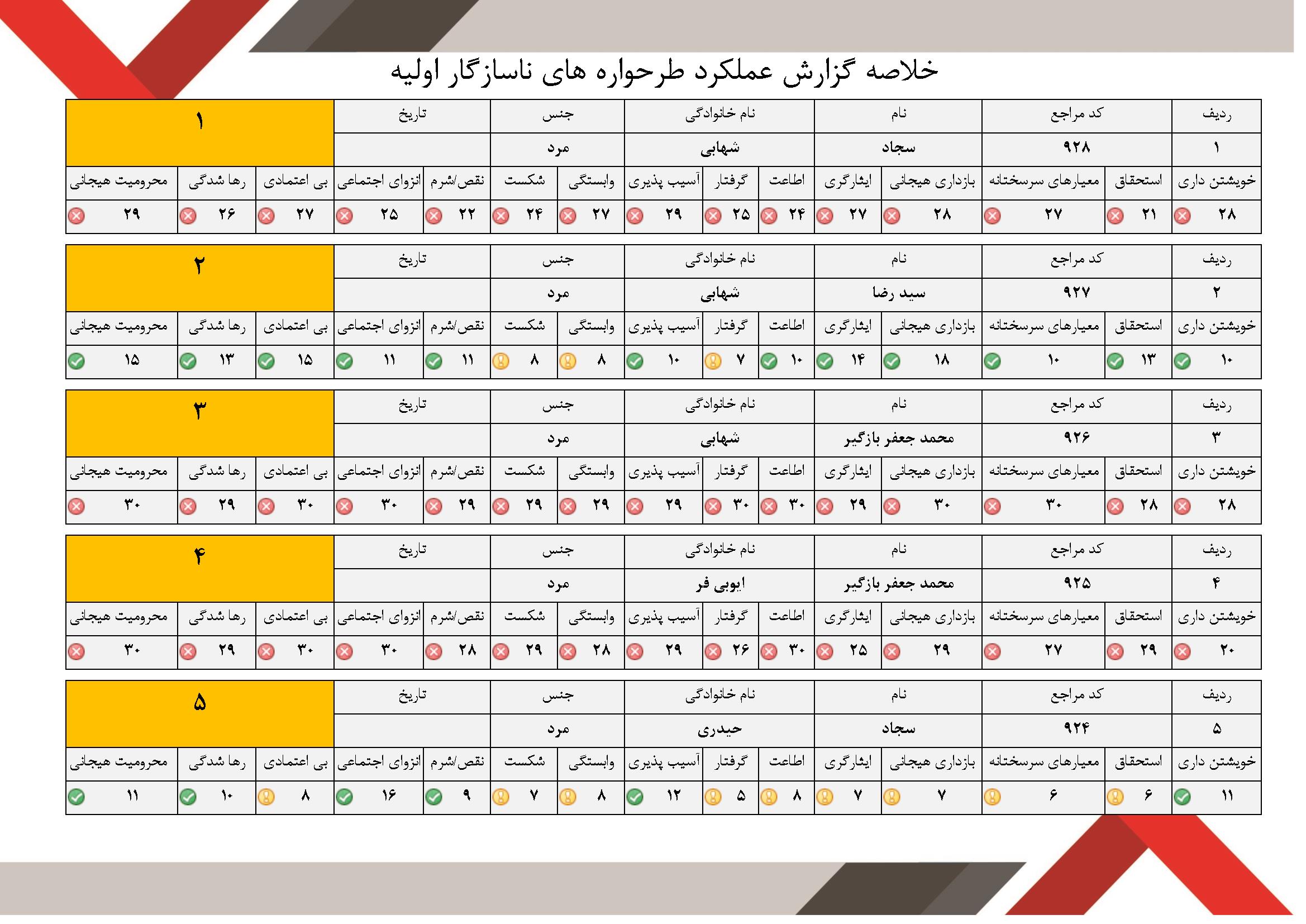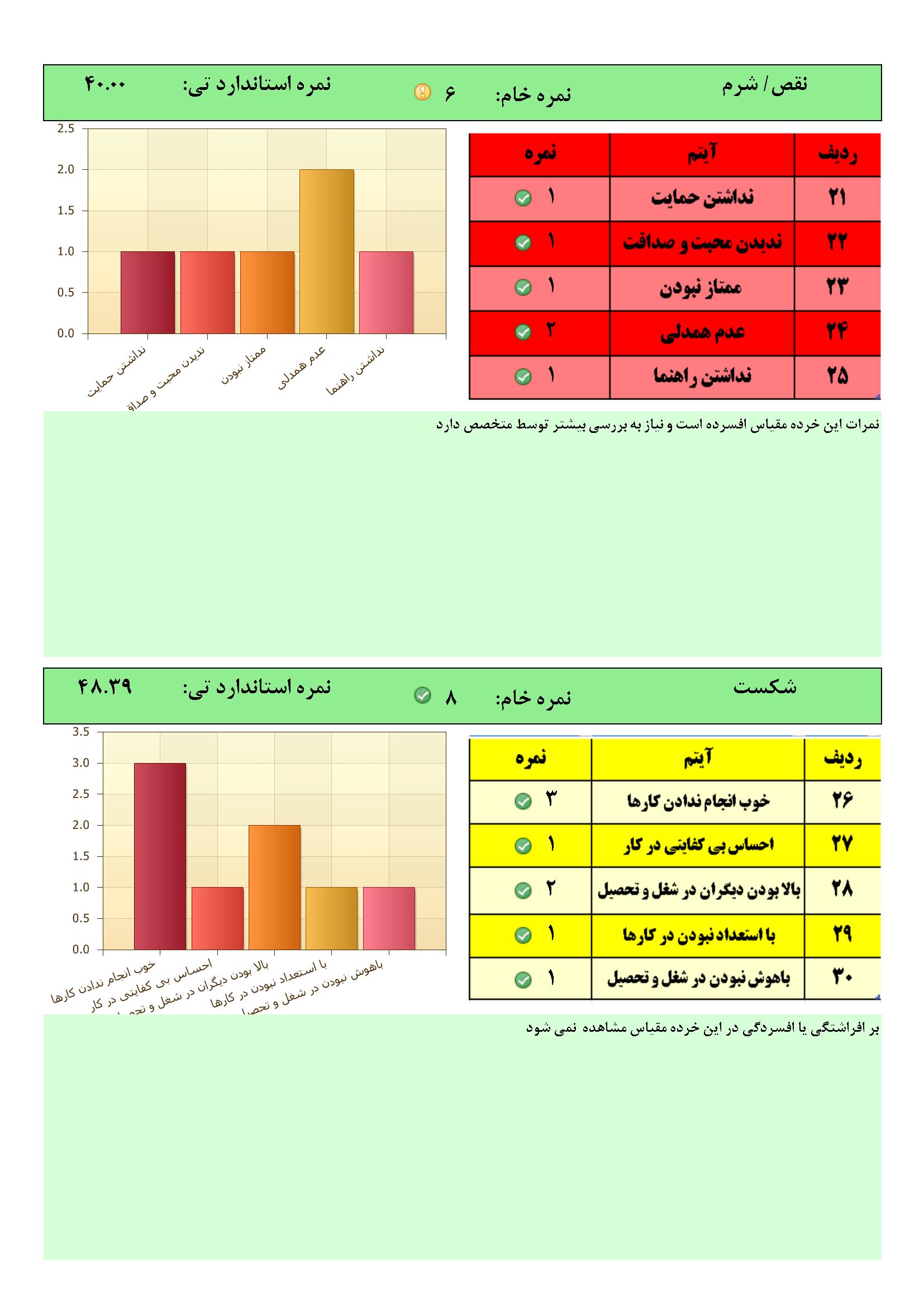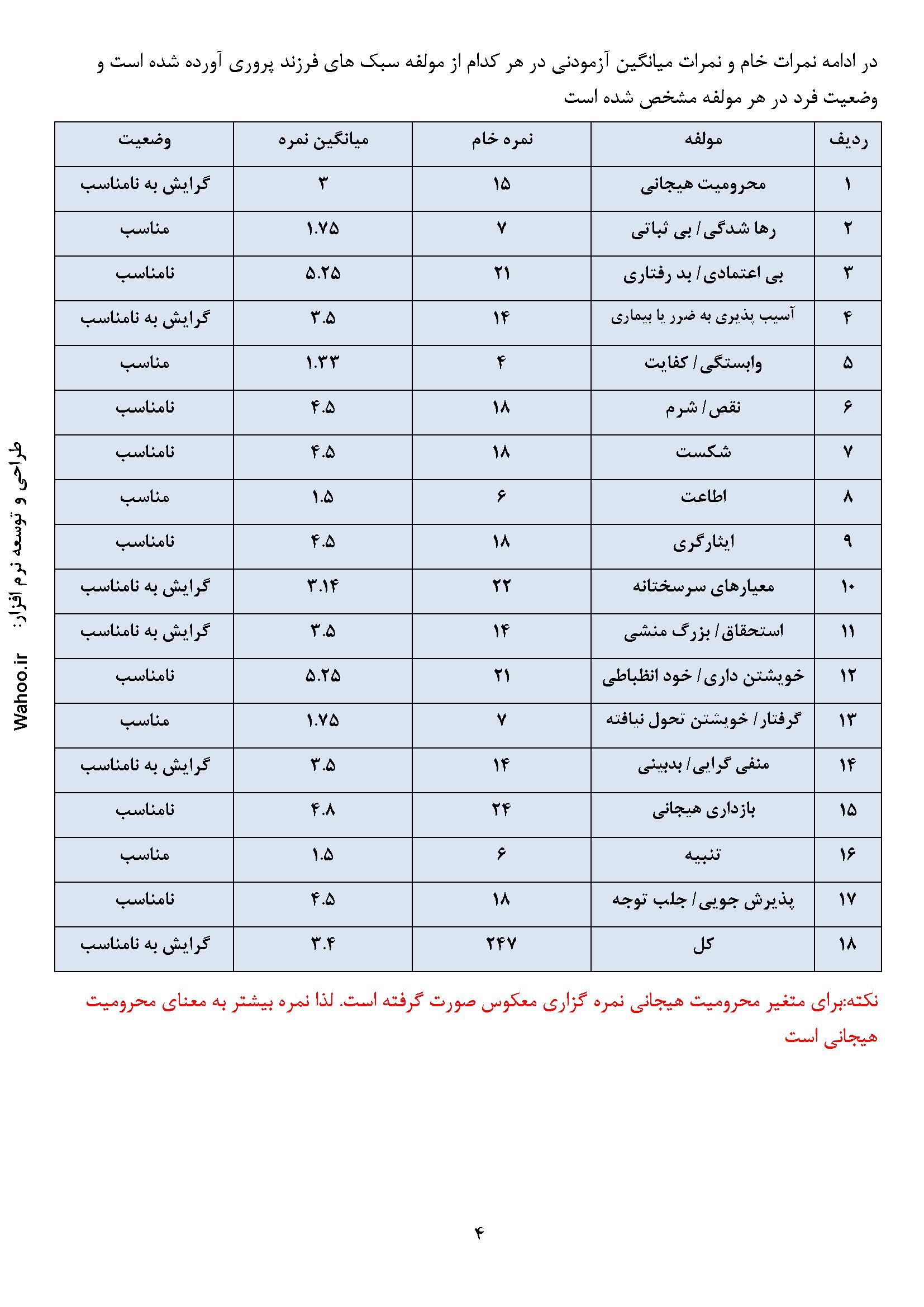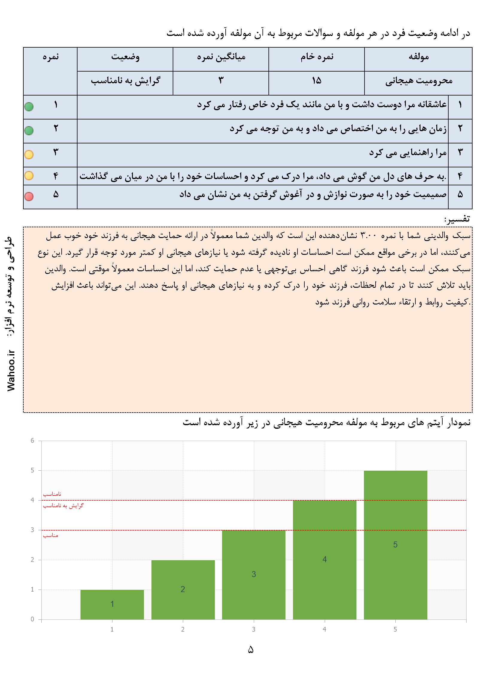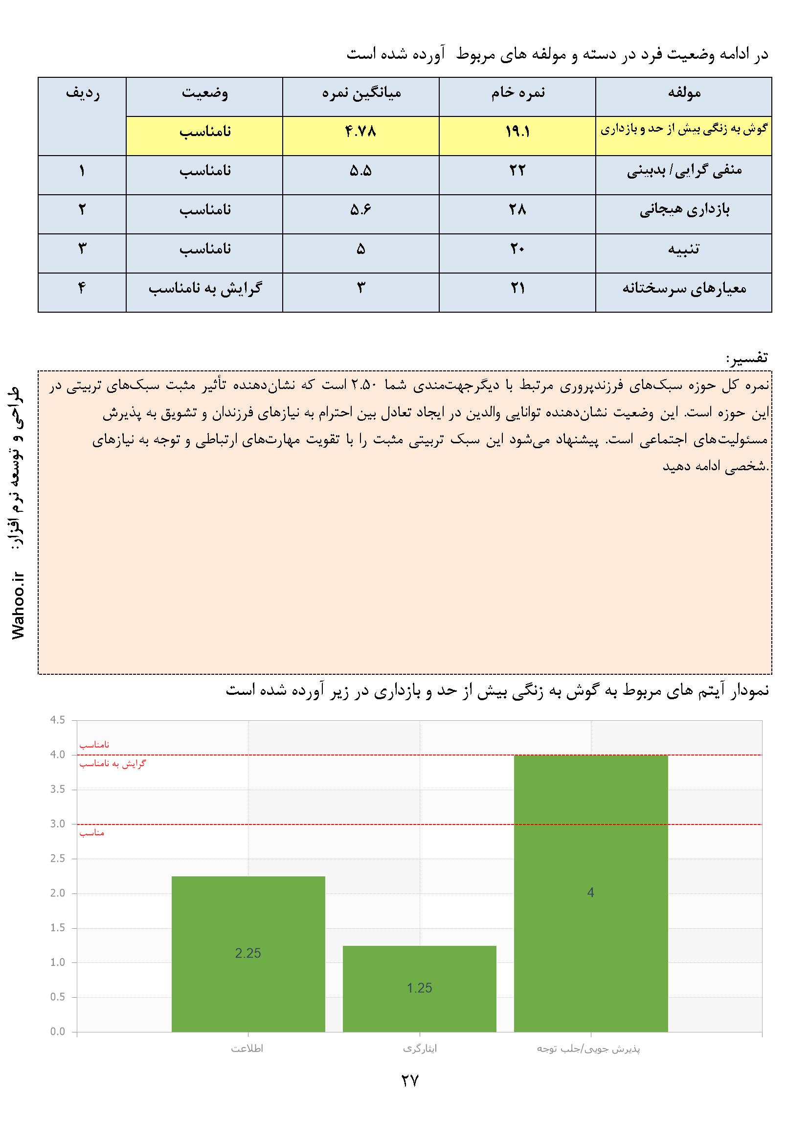 در زیر نمونه خروجی از آزمون طرجواره- اجتناب آورده شده است(چهار صفحه از ده صفحه گزارش آزمون)