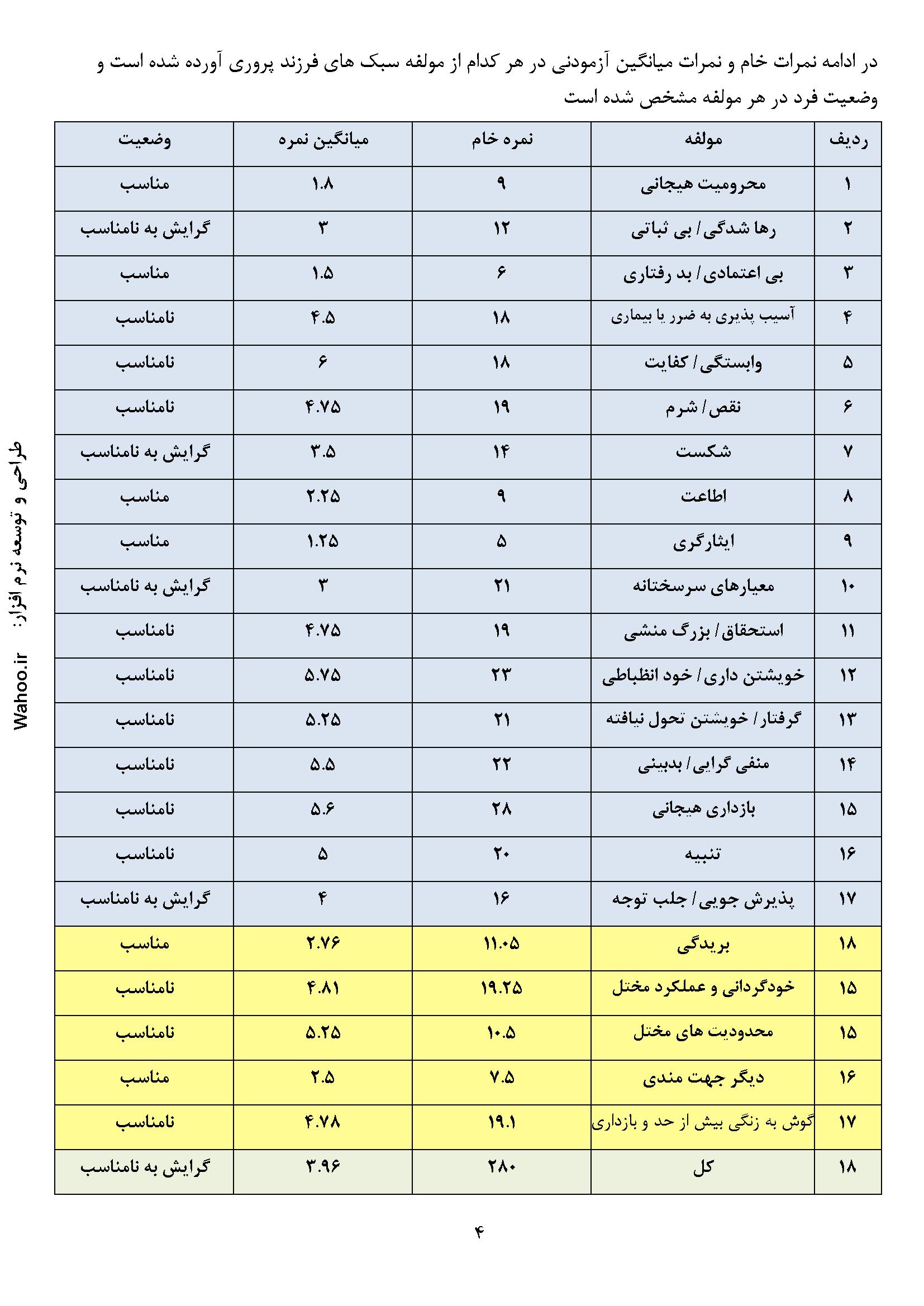در زیر نمونه ای از خروجی سبک های فرزند پروری یانگ آورده شده است