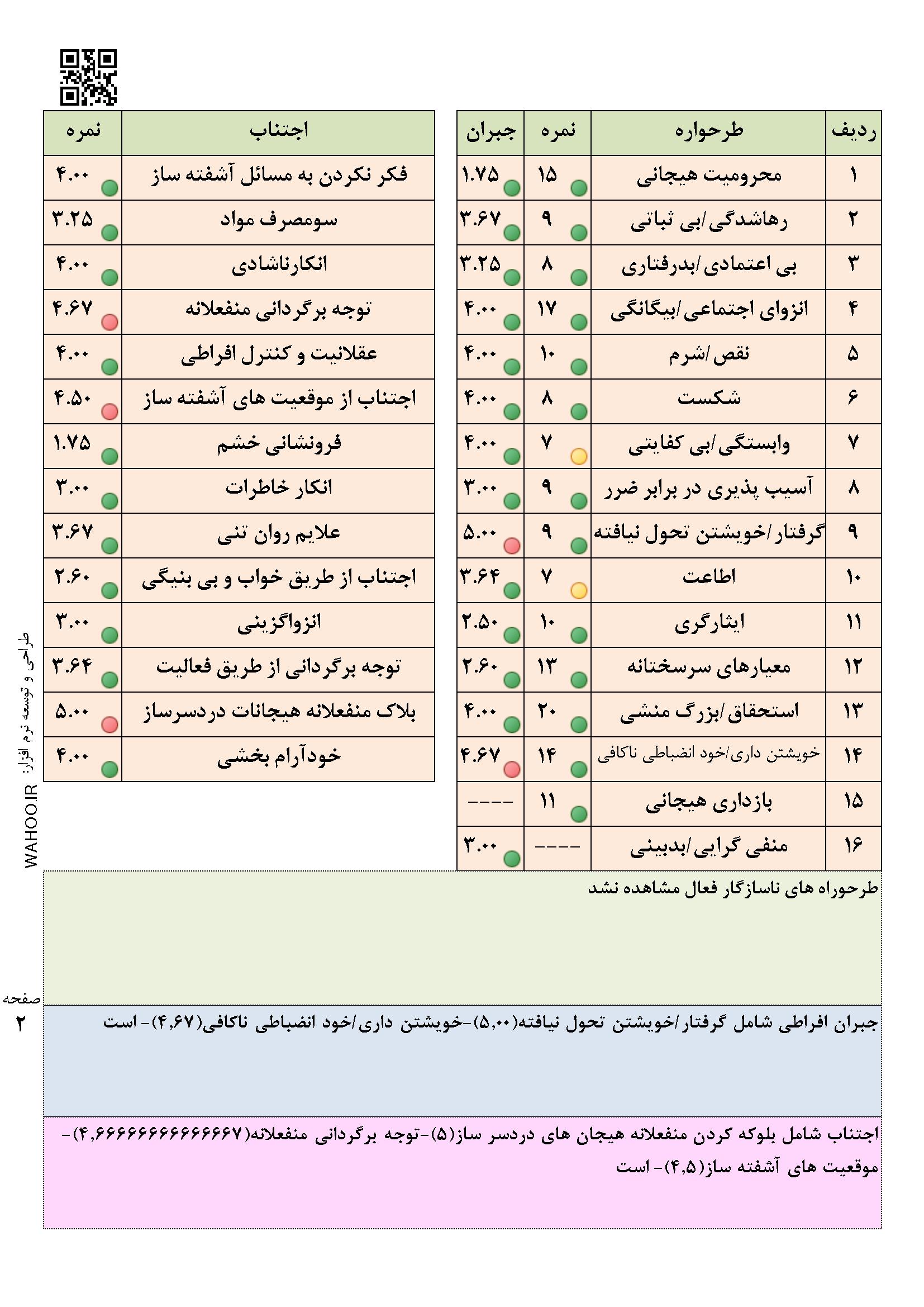 در زیر نمونه خروجی از نرم افزار طرحواره-جبران آورده شده است.چهار صفحه از 16 صفحه گزارش